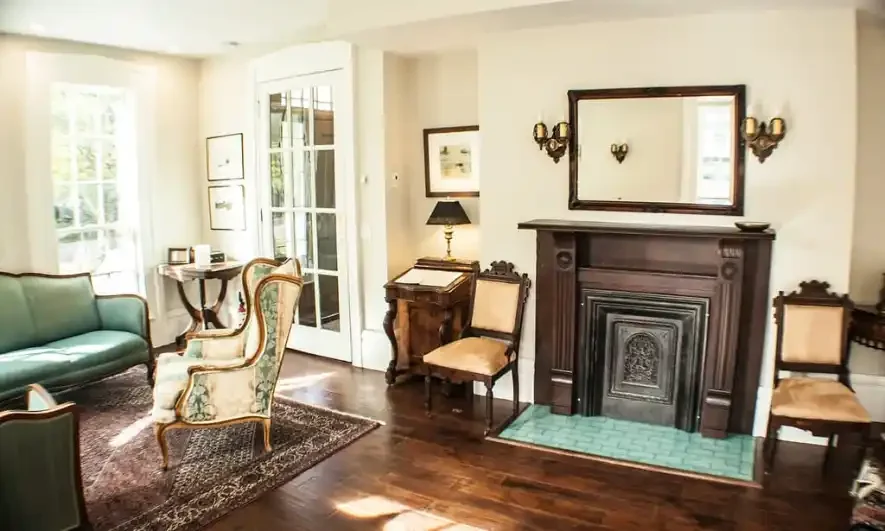 You’ll enjoy a full gourmet breakfast with us, prepared on our early 1920’s stove, featuring baked goods, farm-to-table local produce and fresh roasted coffees. Charming and romantic guest rooms on three floors featuring large beautiful windows with views of the garden or village, queen & king beds, some rooms with Jacuzzi tubs, tiled showers, period antiques and decorated with attention to detail.
